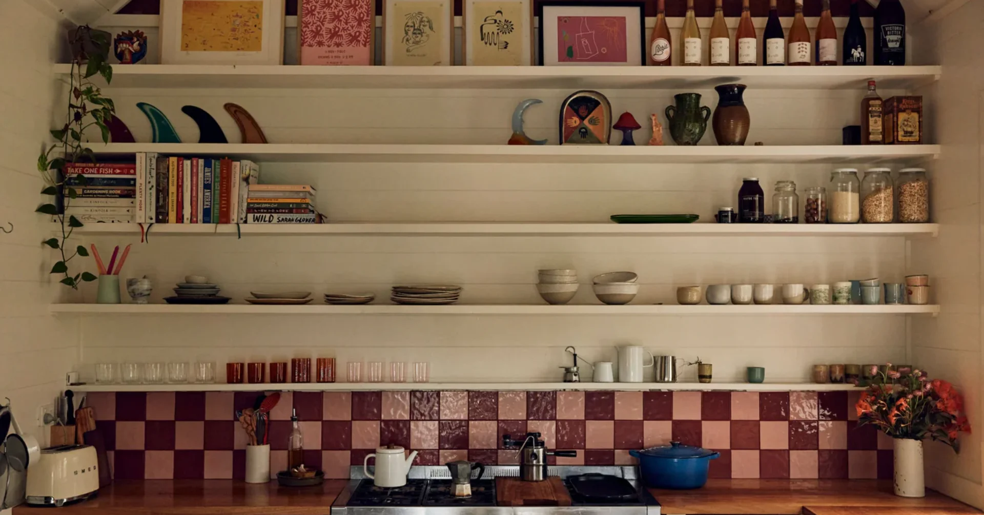 I love to collect ceramics by small makers, especially from our travels. I love pieces from markets and random craft stores. One of our friends, Suraya Scully has made most of our dining pieces and mugs which we use every day. I also have a beautiful piece by Zali Rae that our friends gave us as a housewarming gift. I co-run a gallery with my friend, Jordi, so I am so lucky to have a house full of art.